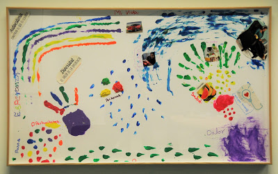 La obra de Saima habla del proceso des de que sus bebes eran embriones hasta que nacieron. Habla de incertidumbre y felicidad.
